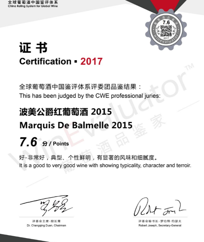 葡萄酒品鉴家评分76分银奖推荐: